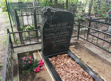 Под надгробье мы залили цемент, выставили плиту по уровню и подправили цветник. Как видно на нижеприведённых фотографиях, памятник был восстановлен. Клиент остался очень доволен проделанной работой.
